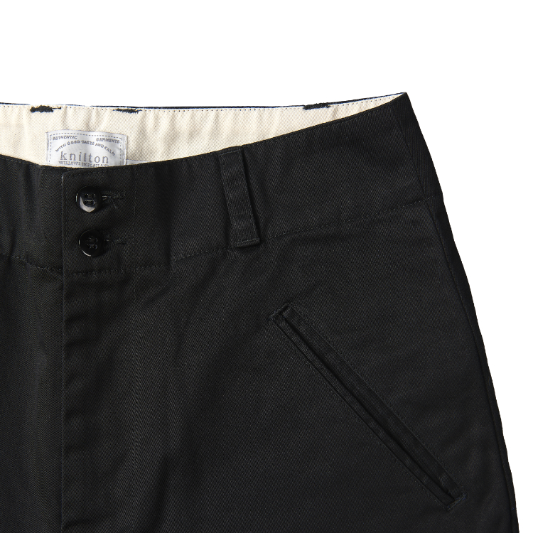 [110-001] 유로 치노 팬츠에 사용된 원단은 [105-001]과 동일한 일본 업체의 치노 원단입니다. 해당 원단은 일본에서 오랜 시간 꾸준하게 사용돼 온 CM36/2 x CM24/2의 원단입니다. CM20 x CD16의 전형적인 치노 원단의 사양에 비해 더 가늘고 부드러운 실 2개를 엮어 더 밀도있고 탄탄하게 짜낸 원단입니다. 이러한 이유로 원단 표면의 광택이 매우 좋습니다. 특히, 위 디자인의 치노 팬츠는 유럽 군에 지급됐던 치노팬츠의 외관을 기반으로 기획됐습니다.